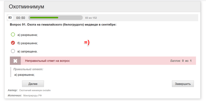 Именно так составлены вопросы по охотминимуму.