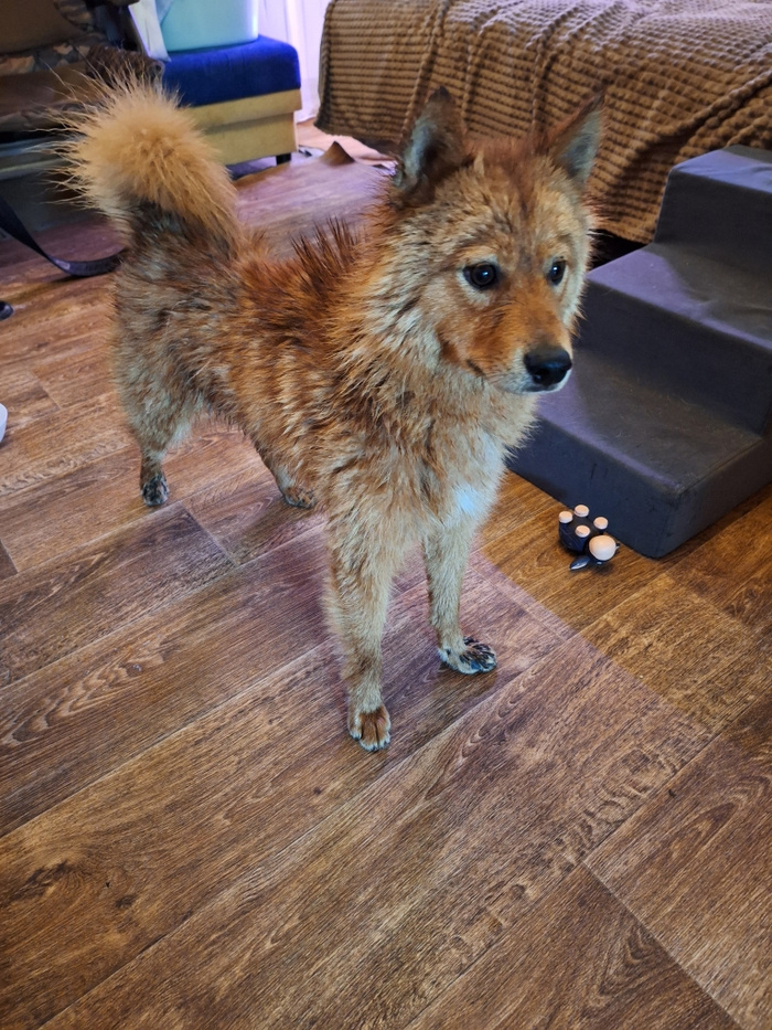 Несколько дней в посёлке "Ягодный квартал" скитался кобель карело-финской лайки. На ошейнике информации о хозяине не обнаружено. Собака зафиксирована, помыта, клещи сняты. Ищем хозяина!
