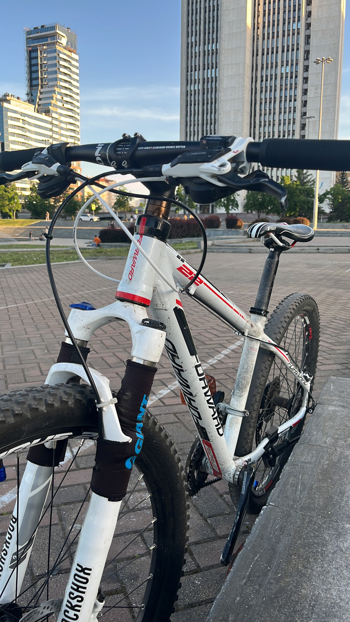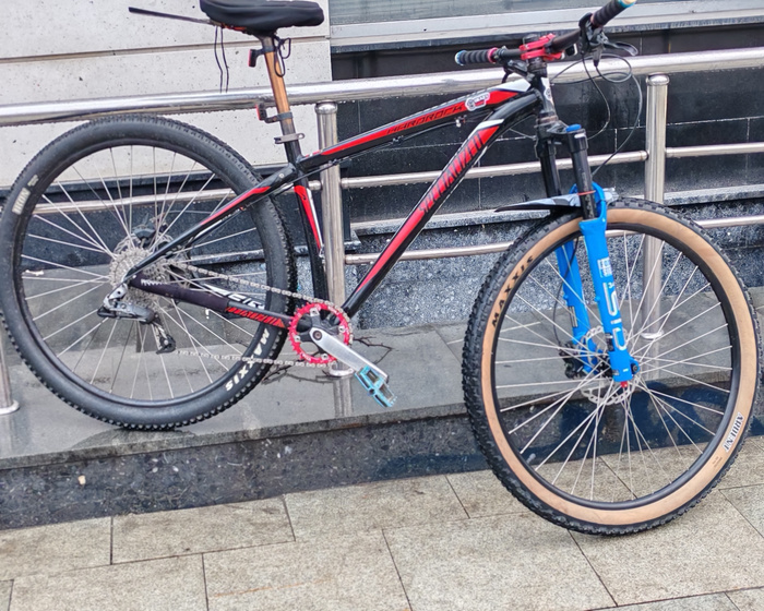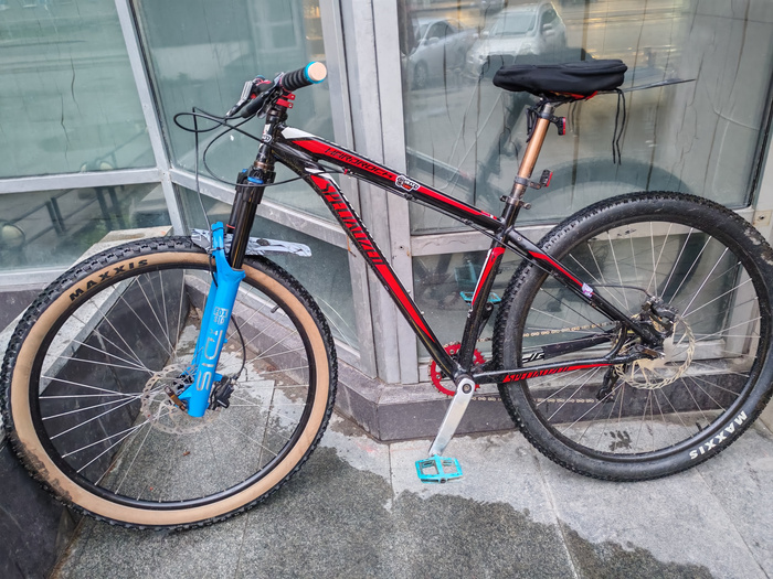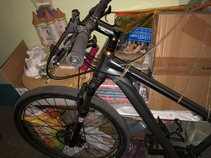Особые приметы: 1) вместо штатной вилки SR Suntour установлена Rock Shok c НЕПИЛЕННЫМ ШТОКОМ - в итоге руль расположен высоко, добавлено несколько проставок (фото 1).