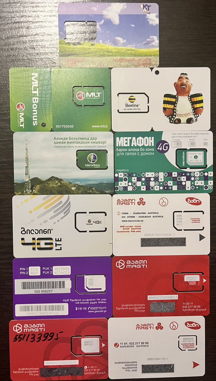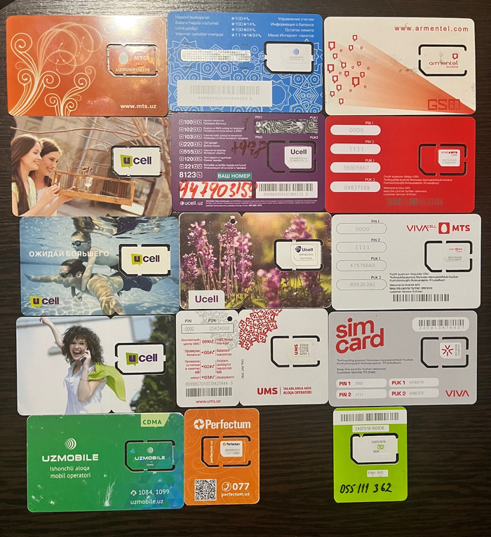 Серия из СНГ продолжается сим-картами операторов Узбекистана и Армении.