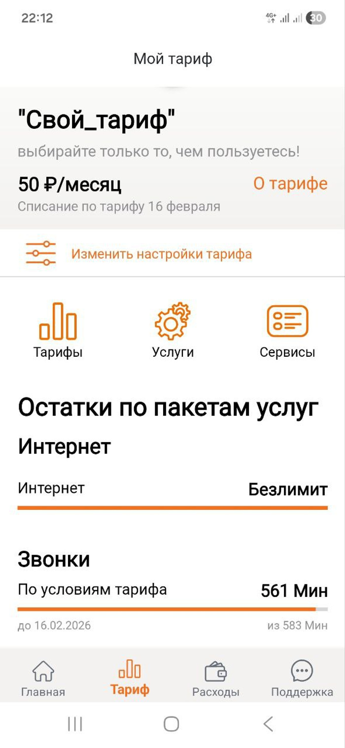 Все работает. Безлимитный интернет, 583 минуты, 100 смс за 50 руб в месяц