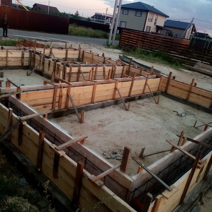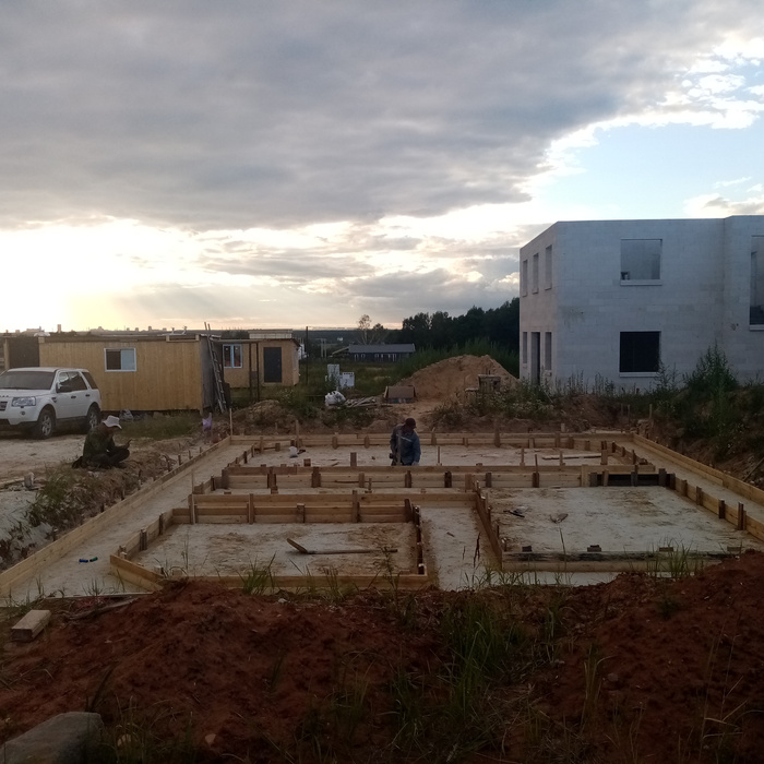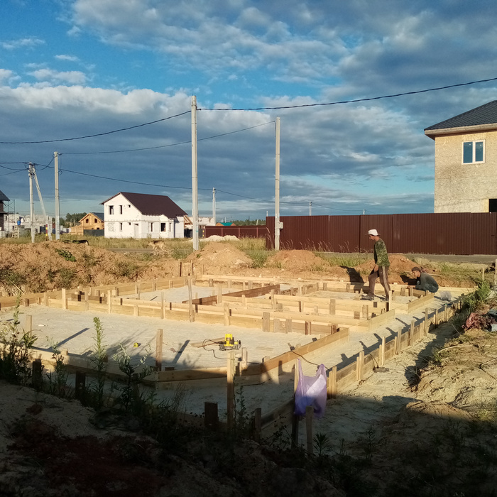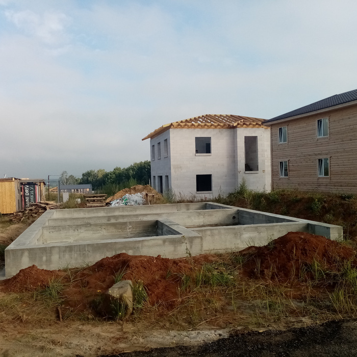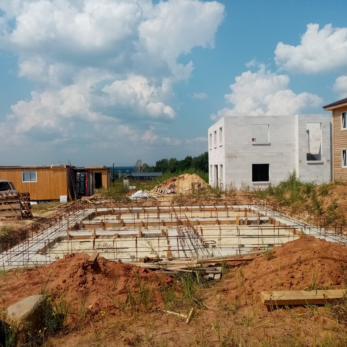 Фундамент начал делать в июле 2022 года, тоже не торопясь сделали за 2 недели подошву и сам фундамент.