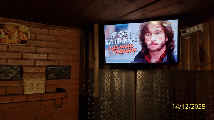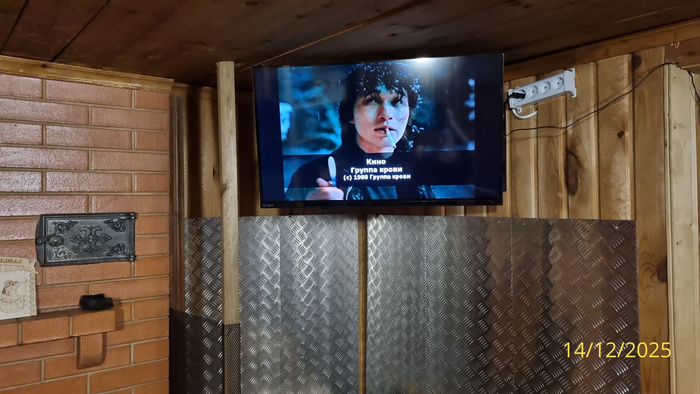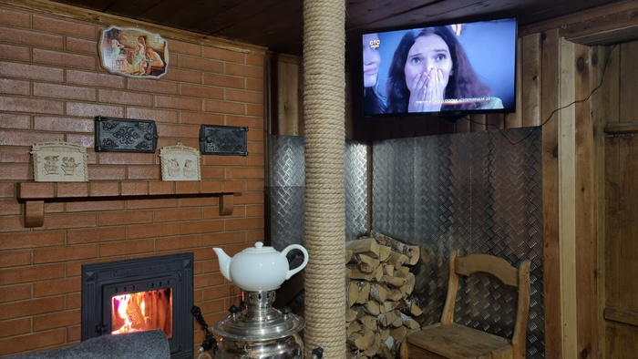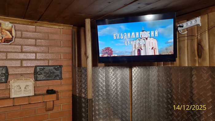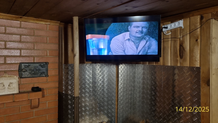 Ну и фишкой стало приобретение в "черную пятницу" телевизора в баню! Установил на длинной крутяще-поворотной "руке". Пришлось накачать всяких видеоклипов, установить дополнительный усилитель к интернетному роутеру, протянуть телеантенну. Ну теперь развлекух в бане, хоть не уходи.