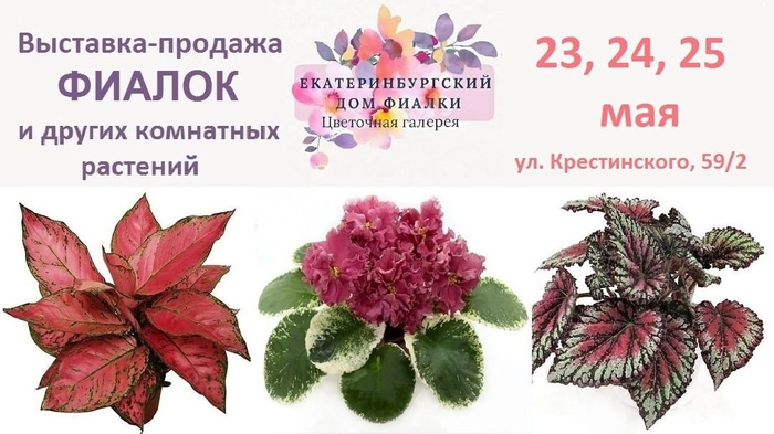 Друзья! Приглашаем вас на выставку-продажу фиалок и других комнатных растений 25, 26,27 июля!