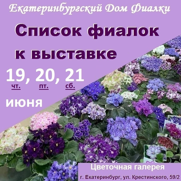 Предоставляем вашему вниманию список фиалок детками и укоренёнными листовыми черенками, которые будут представлены на выставке 27, 28 и 29 сентября!