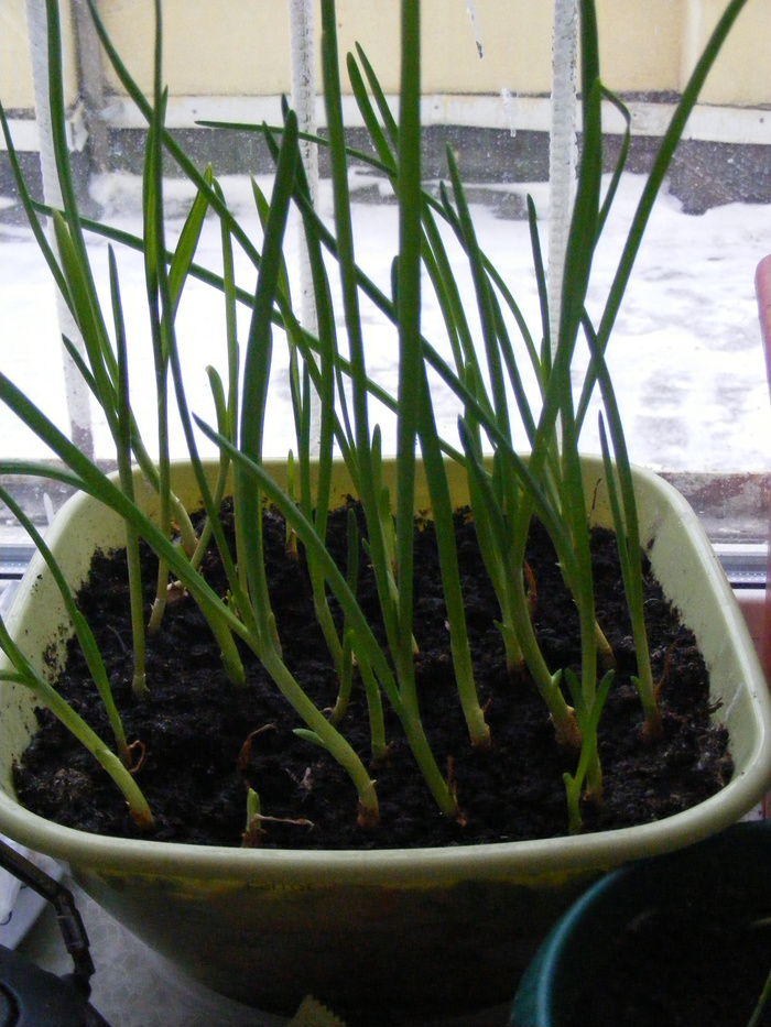 лук уже 2й урожай из севка на подходе . а это ветку на помидорку срезал , так она тоже заколсилась