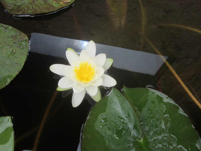 Нимфея белая, сорт не помню. Поделена в мае, поэтому на фото цветочек некрупный. Цветет охотно, разрастается очень быстро, за три года сломала тазик, в котором росла и "обросла его" - кое как из корневища выковыривала пластик. В литровом контейнере. 400р 89028767209 В.Пышма