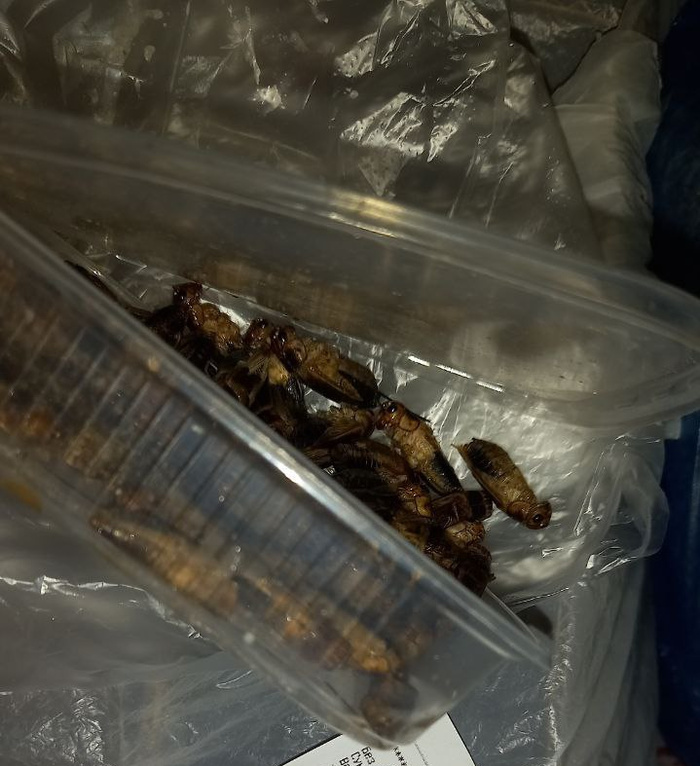 Пришла очередь сверчков. Они были разделаны (без лапок, но с головой и крыльями).