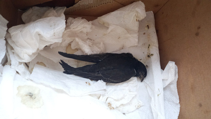 Здравствуйте, живем в Екатеринбурге. Нашли стрижа на стройке, всего в крови, дергался до ужаса. Подобрали его, принесли домой перевязали ему крылья так, чтобы они были прижаты к телу. Возможен перелом. Думали возьмут в ветеренарке, в нет, они лечением диких птиц не занимаются. Возникло два решения