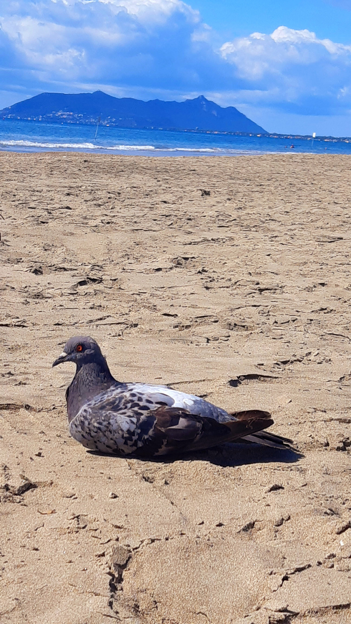 Взглянула на вашего голубя и вспомнила о греческой дворняге, которую я сфотографировала в пасмурный дождливый день на краю пляжа. В тот день никто не купался, мы с утра ушли гулять, а когда возвращались вечером, она лежала на том же месте. Наслаждалась наступившей тишиной и безлюдьем.