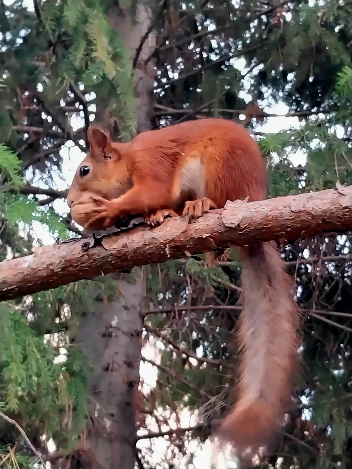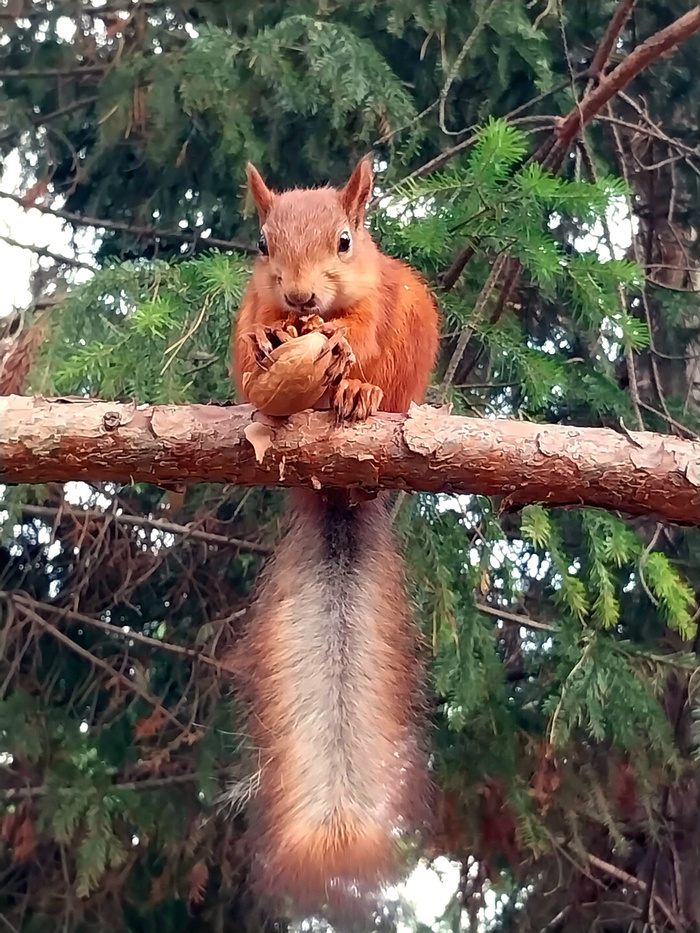 У Вас белочку получается сфотографировать в разных позах и местах и это здорово!, шикарный зверёк для наблюдений. У меня только фотки где белочка семки ест, и попа с хвостом, когда улепетывает, испугавшись моих котов..