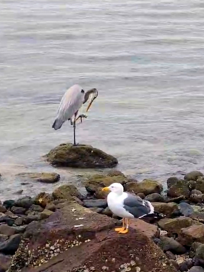 Кадр из видео, не очень чётко видно, но впечатление, что чайка окольцована.