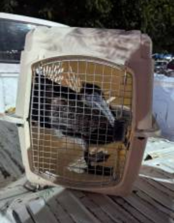 К месту встречи пришёл госслужащий орнитолог с переноской. Рассказал, что до этого выезжал к двум пеликанам, залетевшим в город и испугавшимся необычной обстановки. Их было достаточно довезти до берега, и они улетели. Ксениному нужна помощь.