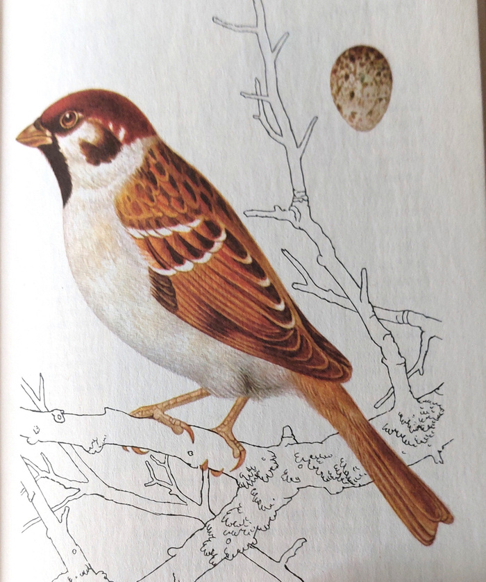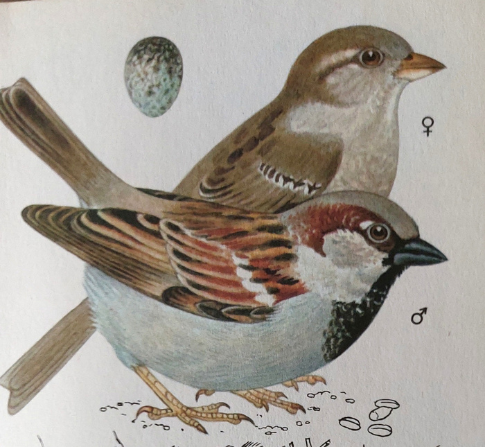 хорошего рисунка рыжих не нашла, а рисунки полевого и домашнего воробья взяла из старой книги Птицы садов, парков и полей авторитетного издательства АРТИЯ