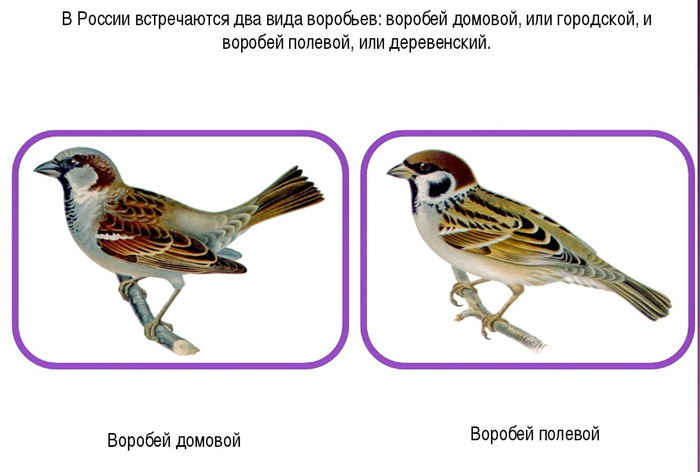 А я не знаю как отличаются полевые и домашние воробьи. У нас, действительно, прилетают разные на кормушку. Есть воробьи чуть больше синиц и более темные. Иногда собирается больше пятидесяти птиц. На поляне всегда оставляем траву под деревьями и кустами, она семенится, только птички предпочитают есть