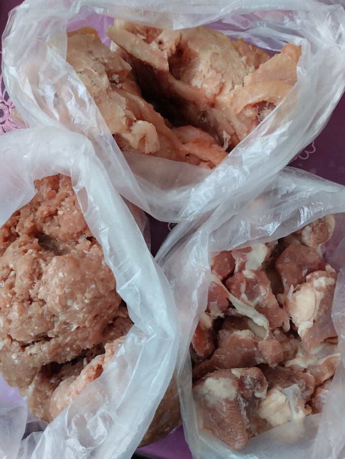 Забыла сфотографировать фарш и обрезь. Уже все расфасовано.