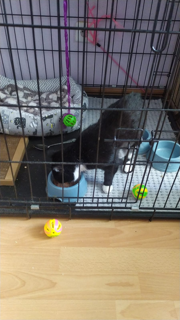 Новый котик, жил в подъезде в общежитии. Сначала думали самовыгульный. Но никто так и не забрал его. Провели через ветеринара, сдали анализы (2400₽-), посадили на передержку. Котик ручной, скоро пойдёт в пристрой