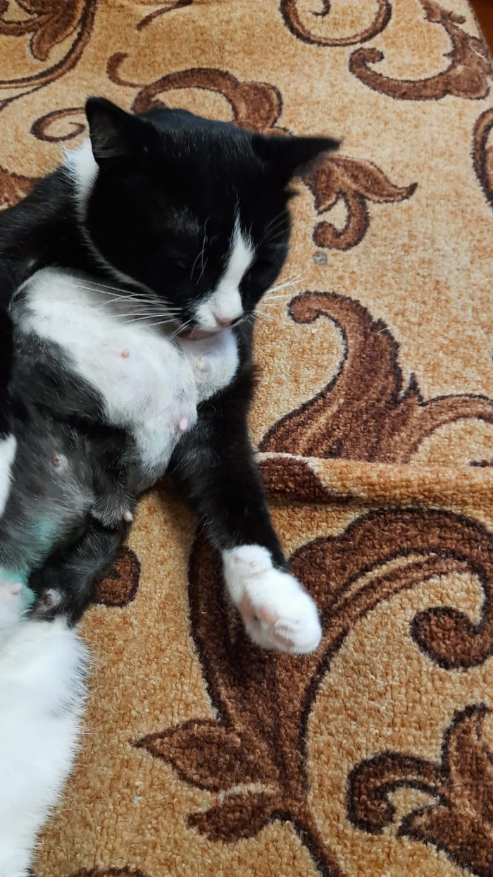 Дела не очень у неё. Под лопаткой и в одной из шишек обнаружили твёрдые уплотнения. Неясно какого качества. Ветеринар сказал надо делать рентген грудной клетки. Если доброкачественная опухоль, попробовать удалить. Если нет, то не стоит мучить кошку, тут сколько уж проживёт.