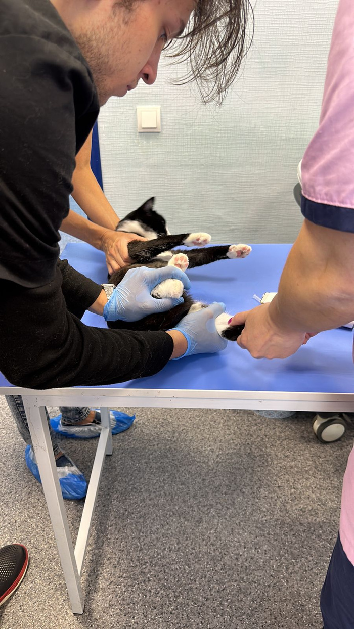 Поставили котёнку глобфел (500₽-). Кушал плохо, кормили со шприца. Сегодня сам уже ест.