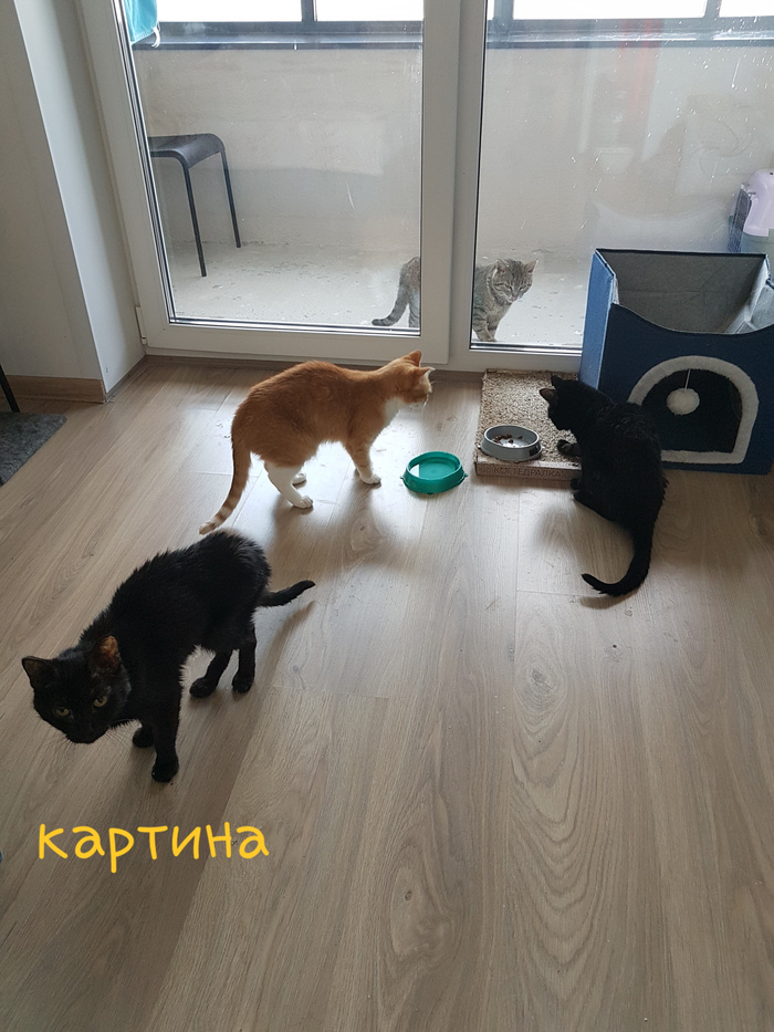 Поймали нового котика-подростка, провели через ветеринара, посадили на передержку. Там же ещё остался чёрный котёнок (пока не поймался)