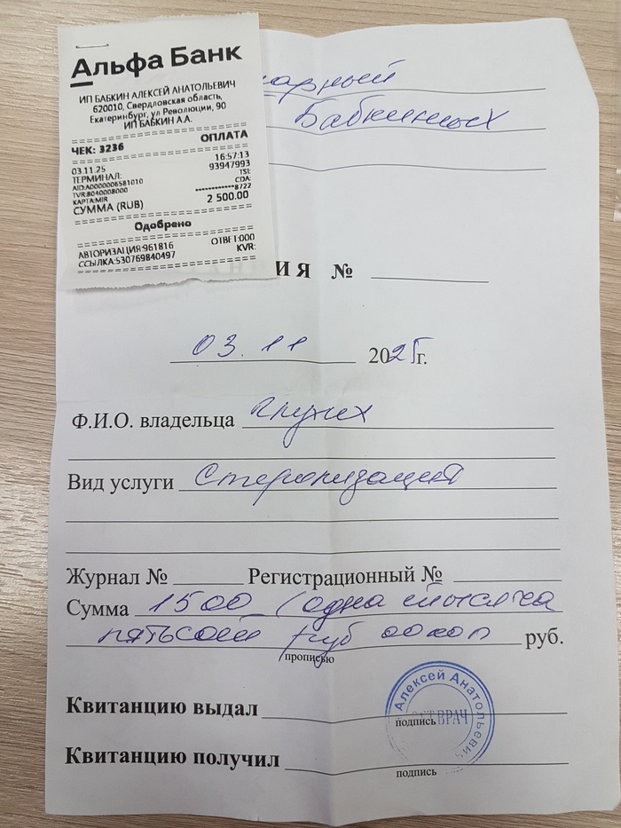Леру стерилизовали по льготной цене 1500 ₽ + кастрировали ещё 2х подросших котиков с соседнего района от местного волонтёра (по 500₽ каждого)