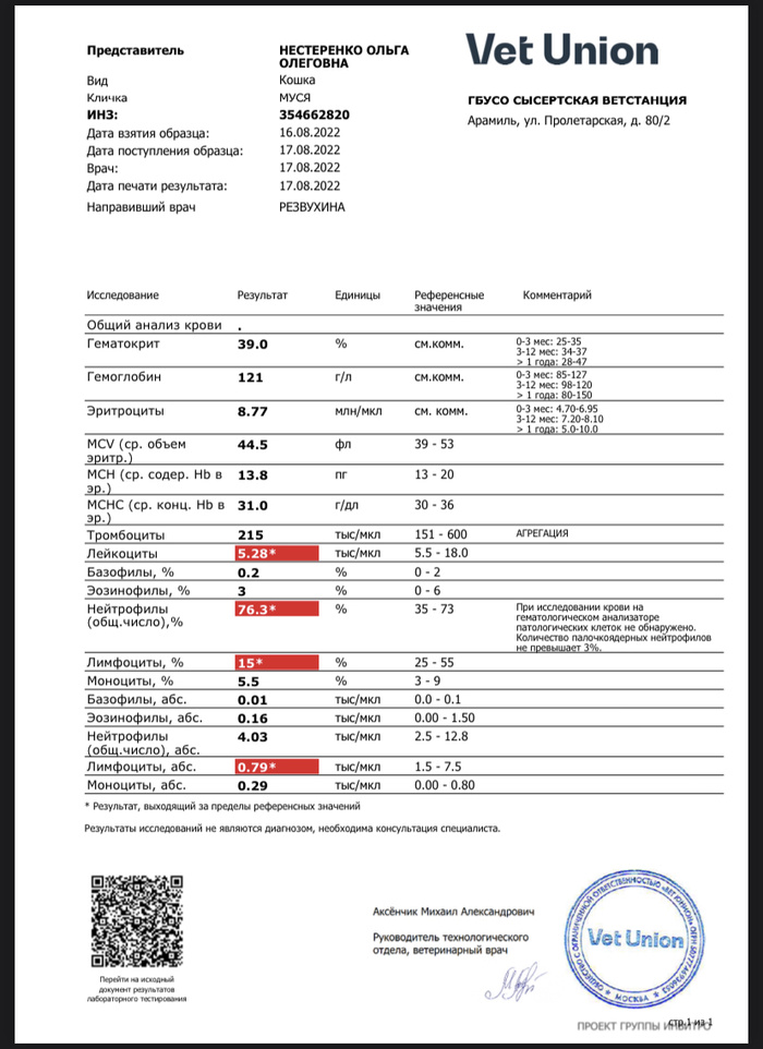 Всем здравствуйте! У нас утро началось со сдачи крови на общий и биохимический анализ. Кровь была очень густая, сказали, что возможно придётся сдать повторно. Результаты будут через 3-5 дней. При осмотре сказали, что кошка выглядит хорошо. Даже посмотрели параанальные железы🙀 Ушной клещ
