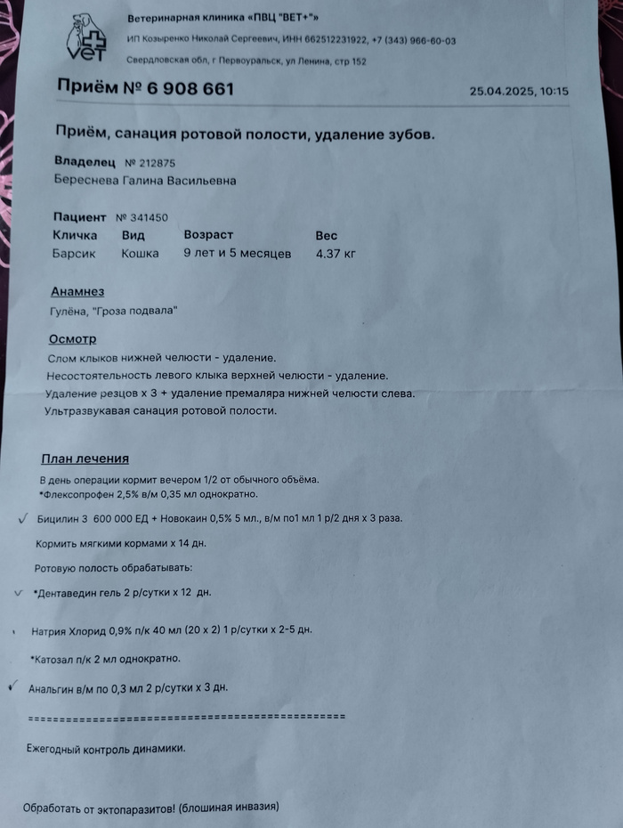 На 25.04. записались на удаление зубов. Помогите, пожалуйста, Барсику, или придется отказаться от посещения вет. клин. Парень есть с трудом....