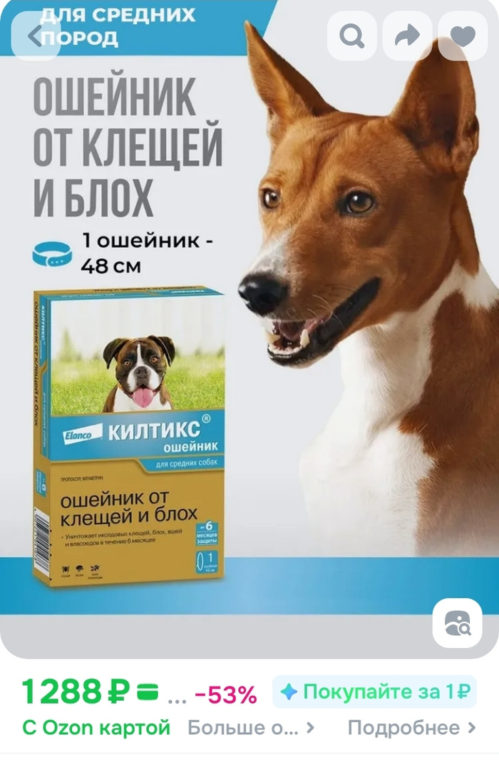 Мы с хвостиками готовимся к следующему летнему сезону. Саянке заказала ошейник Килтикс от клещей. Он сейчас дешевле на порядок.