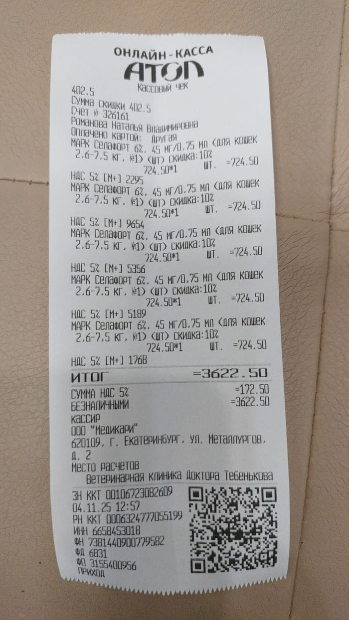 Дорогие форумчане, у нас снова беда. Все кошечки начали чесаться((( Ветеринар посоветовал пропить селафарм. На такое кол-во кошечек сумма приличная. Мы не справляемся с расходами, в 19 числа аренда 8000 тыс. + ку (1500 руб.)