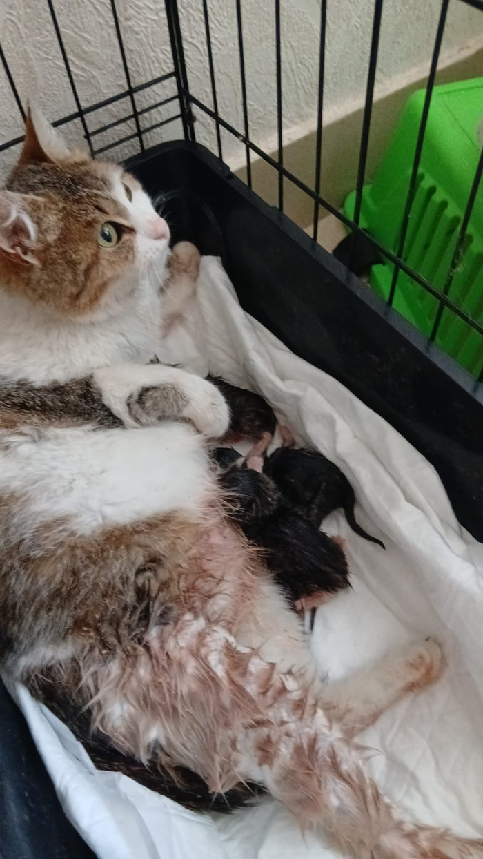 У нас пополнение. подобрали беременную кошку на улице (чуть собаки не загрызли), в первую же ночь пребывания у нас родила. В тесноте, но не в обиде, как говорится.
