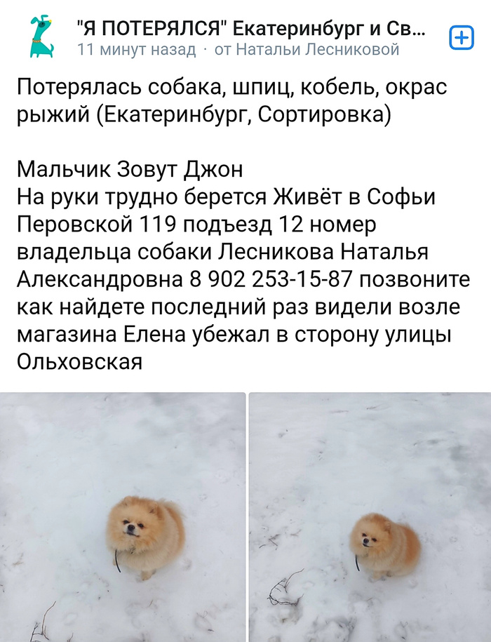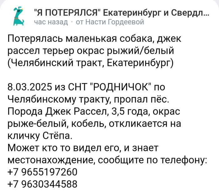 Потерян пёс в марте