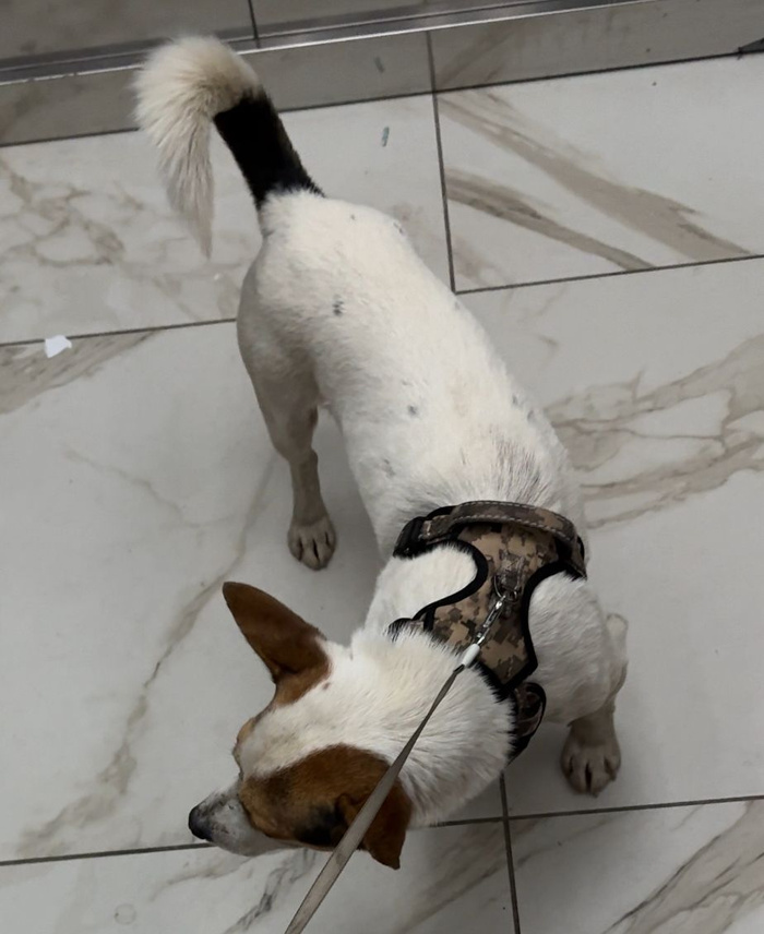 Дворняга по типу Джек Рассела, около пяти лет, Полностью белый, уши рыжие, часть хвоста черно-рыжая , особая примета Между ушами яркое рыжее пятнышко, убежал из СНТ СНТ Работников Культуры на Московском тракте, 5.11 видели в районе за Меги! 89000477221 Ирина[img][/img]