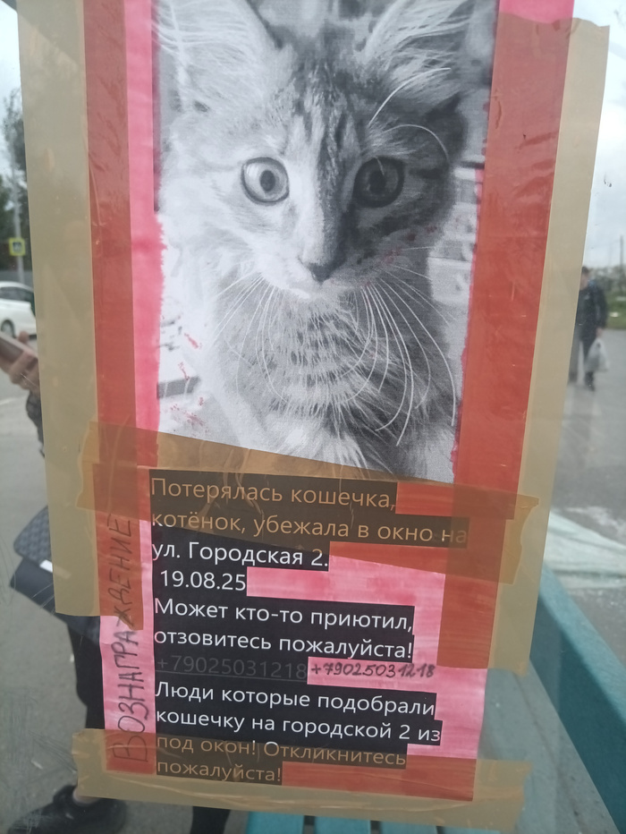 Потерялся котик, черный окрас, жёлтые глаза, пушистый, 2 года, откликается на своей имя Филя, очень шустрый, боится машин, шума, выпрыгнул с балкона 2 этажа, район новая сортировка, улица автомагистральная, если вдруг найдете, увидите, пожалуйста, обязательно пишите или звоните