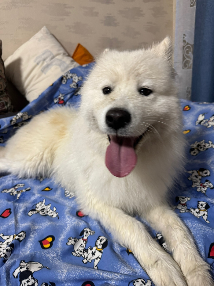 Нашел собаку, возле моста со стороны Екатеринбурга, бежала с частного сектора, самоед, девочка (телефон для связи 89222117858)