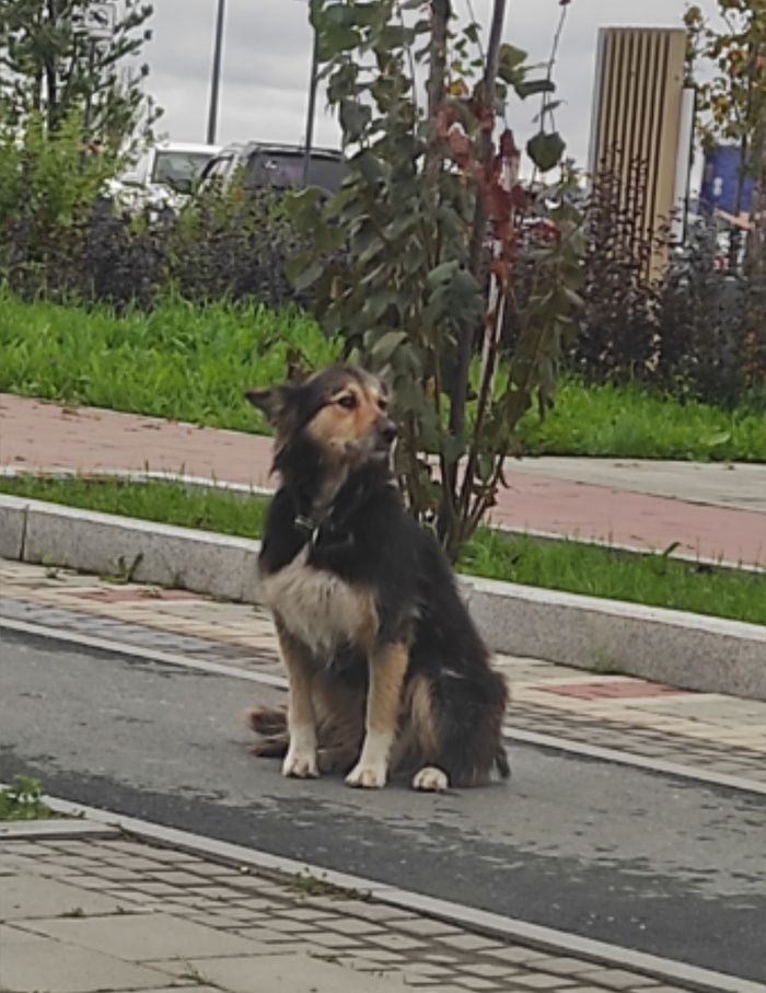 Замечена в ошейнике, два дня сидит на одном месте. Солнечный.
