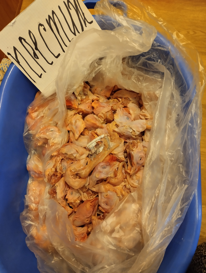 УРА! Наконец то поступили головы с Птицефабрики. Купили две коробки 20 кг по 50 руб/ кг. Ну...И... Не только головы..