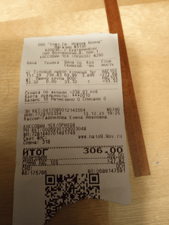 306 руб (корм, чек пост от 29.12.25)