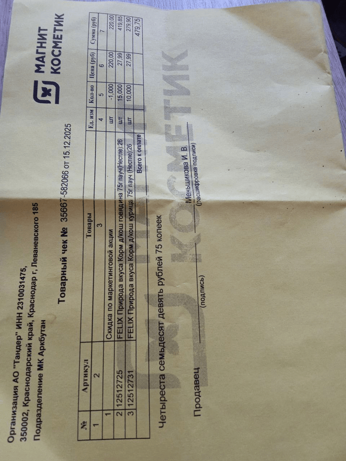 479 руб (корм, чек пост от 29.12.25)