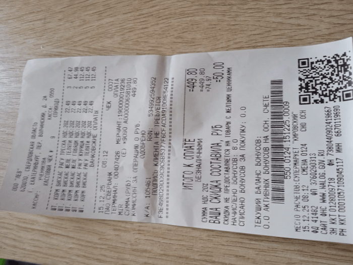 450 руб (корм, чек пост от 29.12.25)