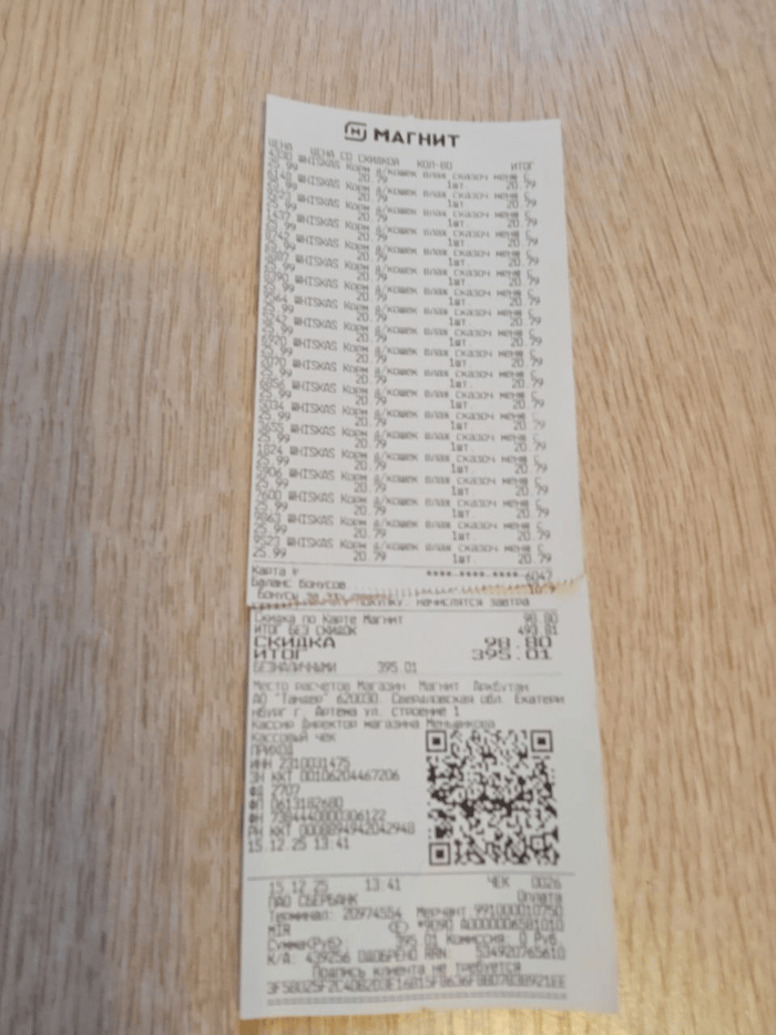 395 руб (корм, чек пост от 29.12.25)