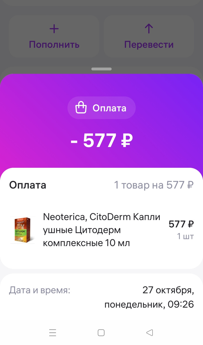 Чек на покупку капель для лечения ушей для собак