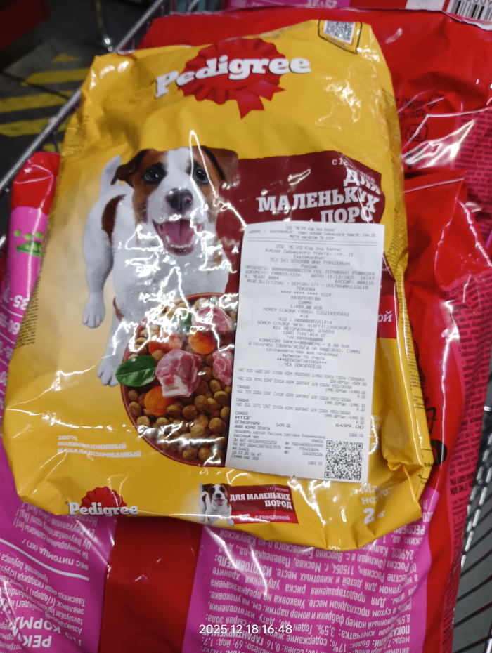 Чек на покупку сухого корма для собак