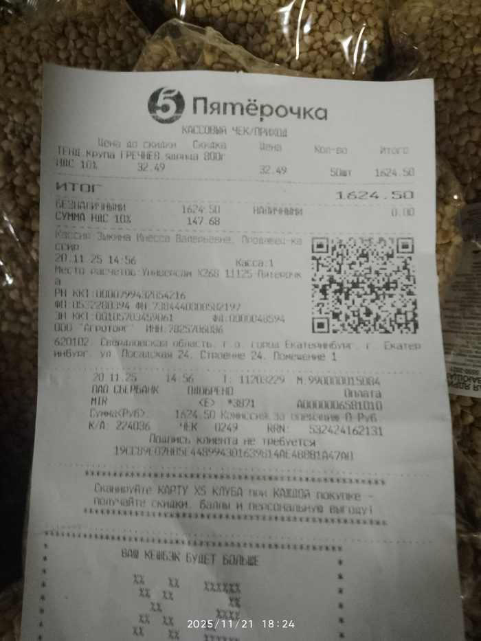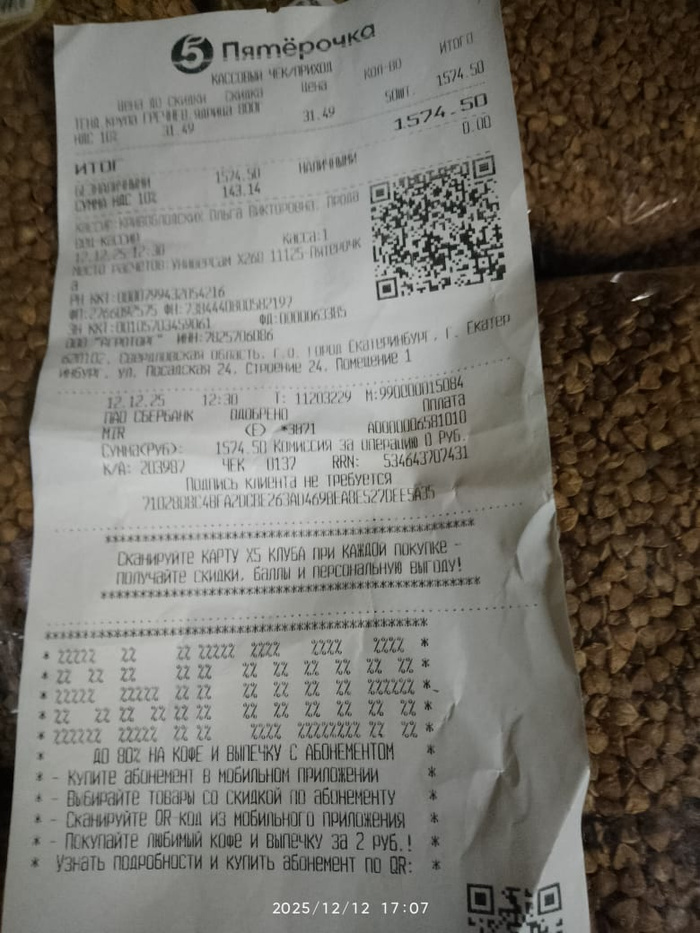 Чек на покупку гречи для собак