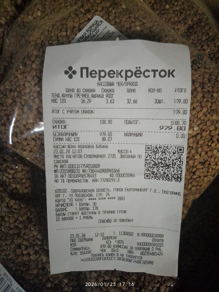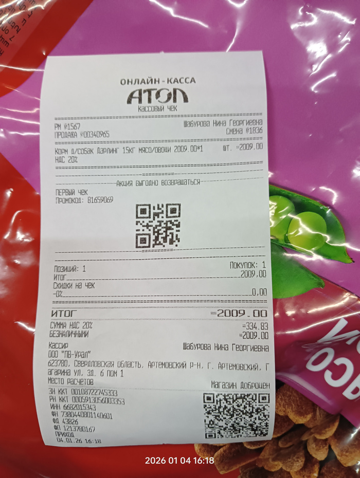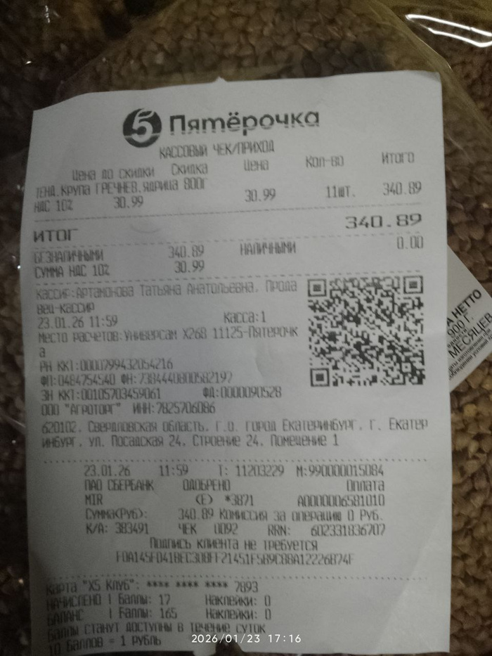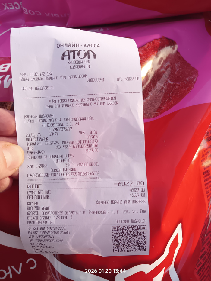 Чек на покупку гречи для собак