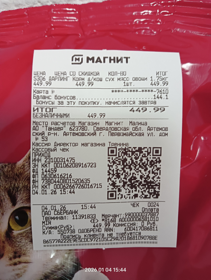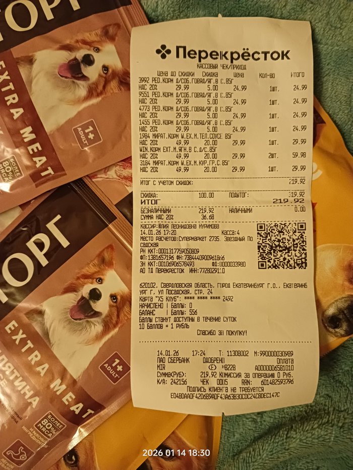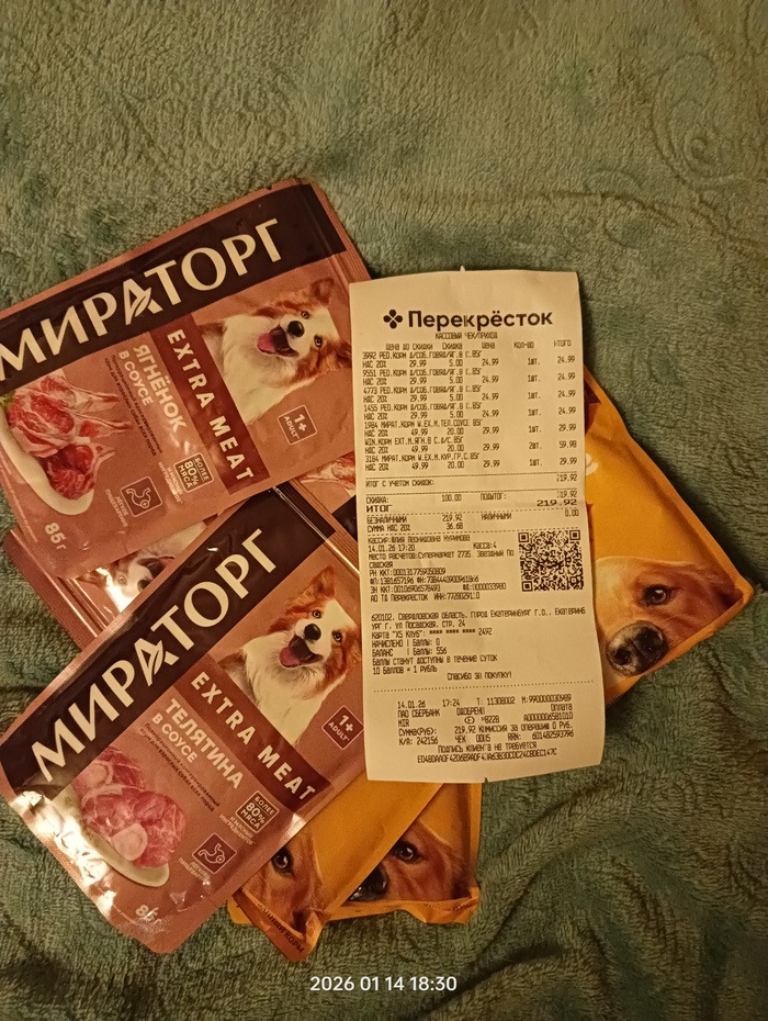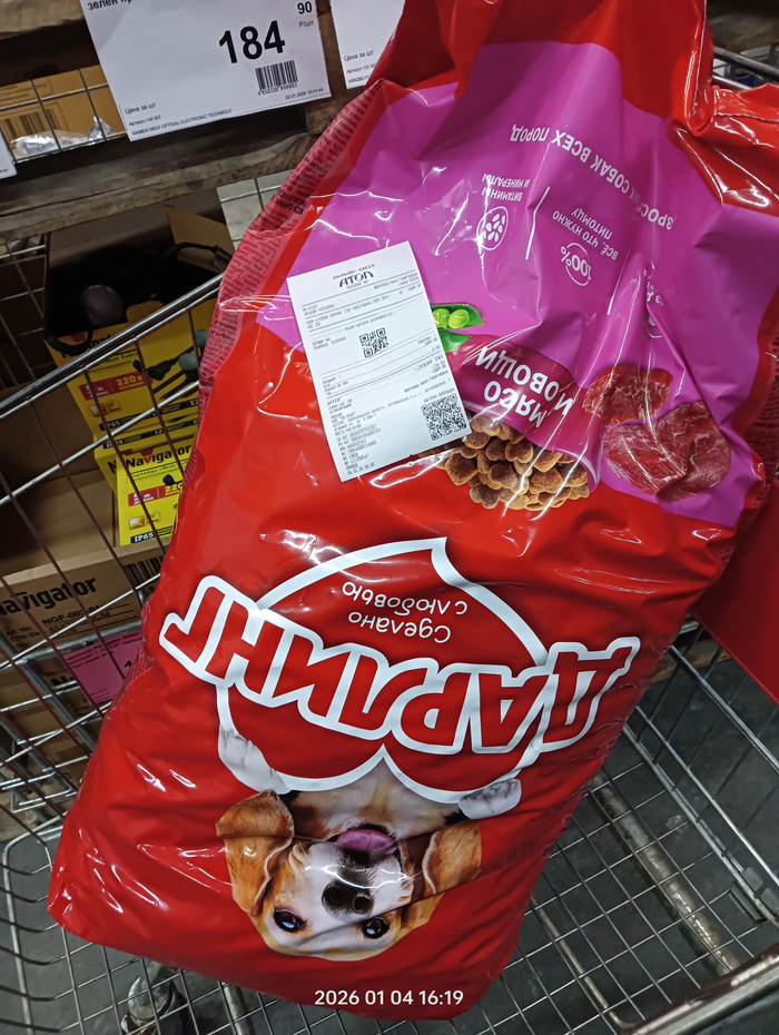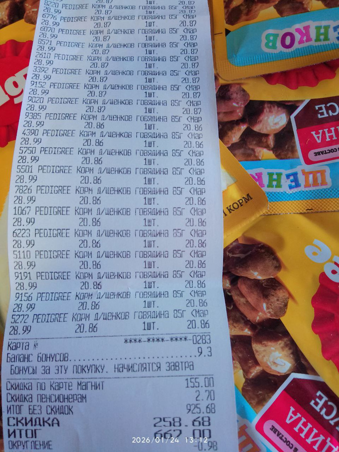Чек на покупку корма для собак