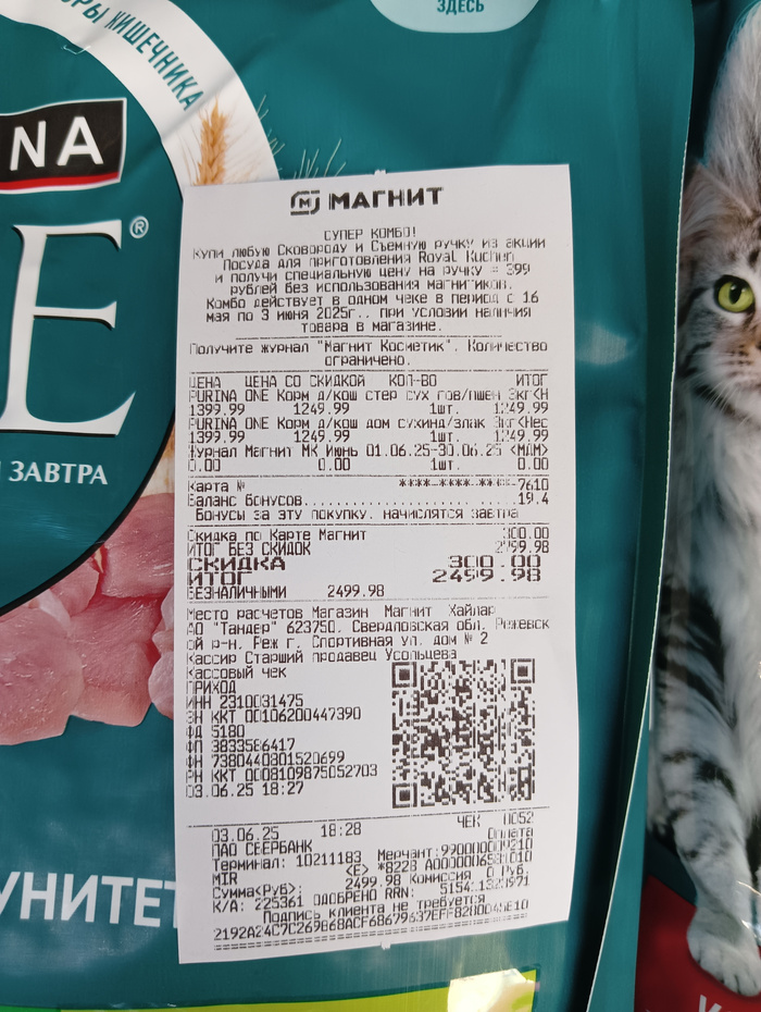 Чек на покупку корма для кошек
