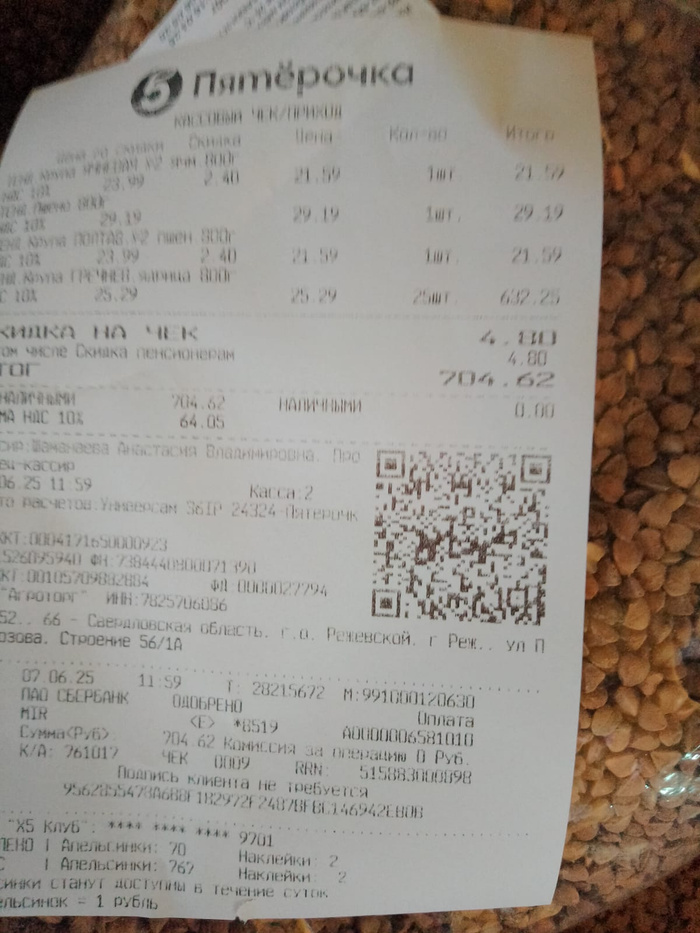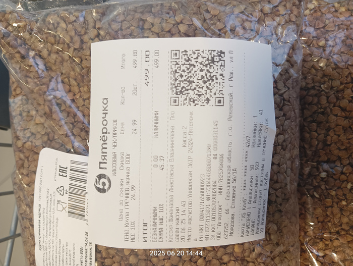 Чек на покупку гречи для собак