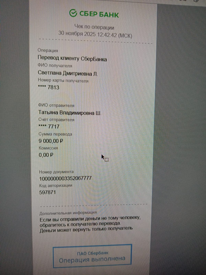 НАТАЛЬЯ ЕВГЕНЬЕВНА М "Помощь щенкам" 500 руб. 10.11.2025