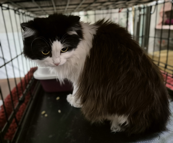 поначалу не очень хорошо переносила то, что с ней случилось. Для домашних особенно тяжело попасть из родного дома в маленькую клетку и в окружение кошек и собак. Официально озвученная причина - переезд в другой город. Фактическая на мой взгляд другая, но это долгая история.