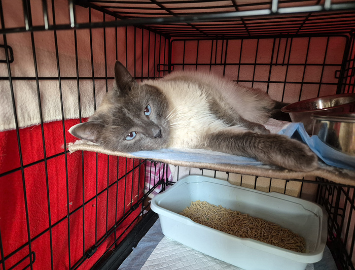 И расскажу про наши дела, вернее наши проблемы. Котик, который старосиамский Раджа, разболелся. Весь в соплях, чихает, не ест, не пьёт, лежит (на какой ярус клетки положила вечером, там и остался).
